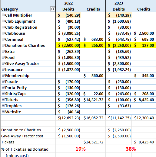 Actual financial information from their treasury reports given at meetings: